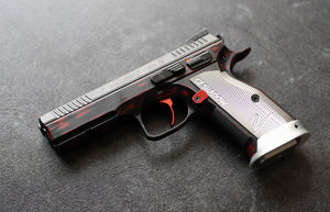 Samonabíjecí pistole na výrobní úrovní Shadow 2 Orange se speciální úpravou. Zakázková úprava laku již z výroba (na úpravách se nepodílela žádná třetí strana). Rám, závěr i hlaveň vybírány taktéž při výrobě (z důvodu nejvyšší kvality) a přesně slícovány. Komora i skluzavka leštěny do vysokého lesku. SA spouštěcí mechanismus a duralová spoušť. Rozšířený SA kohout. V kompletním balení 3 zásobníky + jedny náhradní střenky tyrkysové barvy. Pistol byla vyrobena v prosinci 2019 celá na zakázku v jedinečném provedení a má odstříleno do 1000 ran.