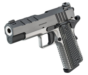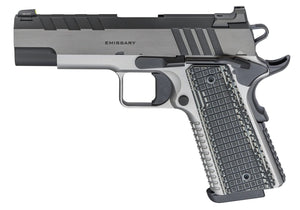 9mm Emissary s hlavní 4,25" (108mm) dokonale splývá s tvarem a funkcí ve střelné zbrani vyrobené pro obranu a nabitou speciálními funkcemi. Je konstruována s kovaným rámem z nerezové oceli a kovaným závěrem z uhlíkové oceli, s krásným dvoubarevným povrchem.
