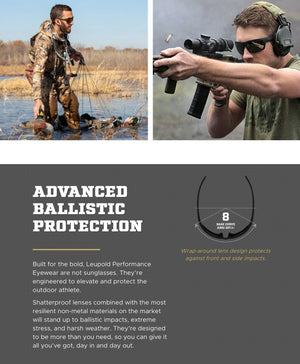 Pokročilá balistická ochrana ANSI Z87.1+, vytvořeno pro odvážné, nejsou to jen sluneční brýle. Jsou navrženy tak, aby ochránily střelc i sportovce.