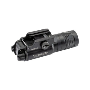 SUREFIRE X300V je podvěsná zbraňová svítilna s vysoce výkonnou LED a IR pro použití s nočním viděním.Svítilna generuje 350 lumenů (13 000 candela) bílé světlo zaostřené pomocí (TIR) čočky do úzkého a jasného paprsku s dlouhým dosvitem a také výrazným prostorovým svitem nebo IR s výkonem 120mW. Prakticky nezničitelná a vysoce efektivní LED poskytuje dostatek světla ať už k nasvícení prostoru, tak k nasvícení cíle v zájmové oblasti. Doba svitu s bateriemi CR123A je 1hod 50min. X300V je vyrobena z vysoce odolné a nárazuvzdorné slitiny leteckého hliníku s povrchovou úpravou tvrdý-elox dle specifikace Mil-Spec. Všechny spoje jsou zatěsněny O-kroužkem pro použití za každého počasí. Díky svému upínacímu systému může být svítilna připevněna k pistoli, nebo dlouhé zbrani vybavené univerzální nebo picatinny lištou (MIL-STD-1913). Oboustranný kloubový spínač umožnuje uživateli zapnout mžikové nebo stálé světlo pouze jedním prstem. Pro dlouhou zbraň je třeba použít jiný spínač.